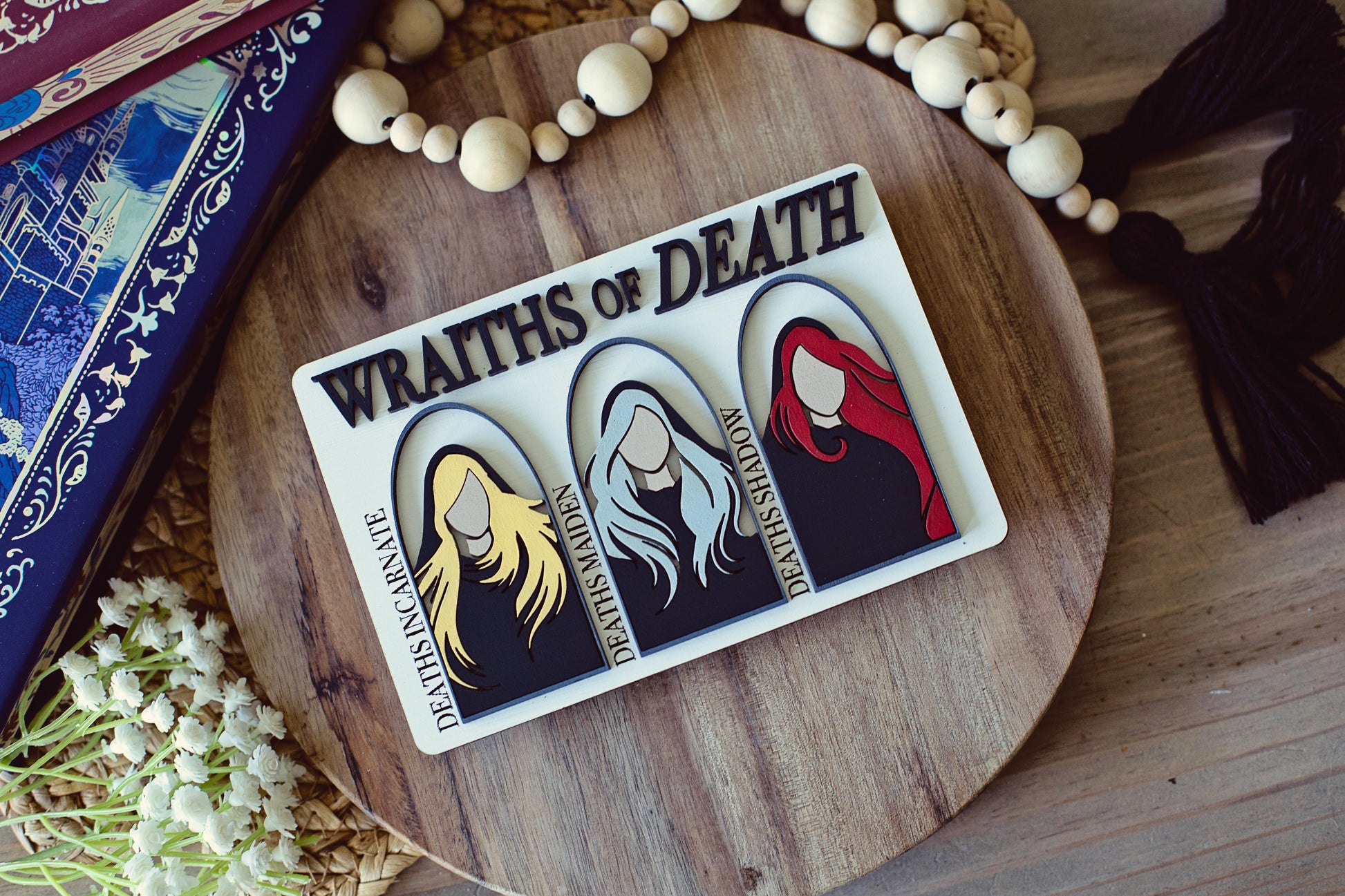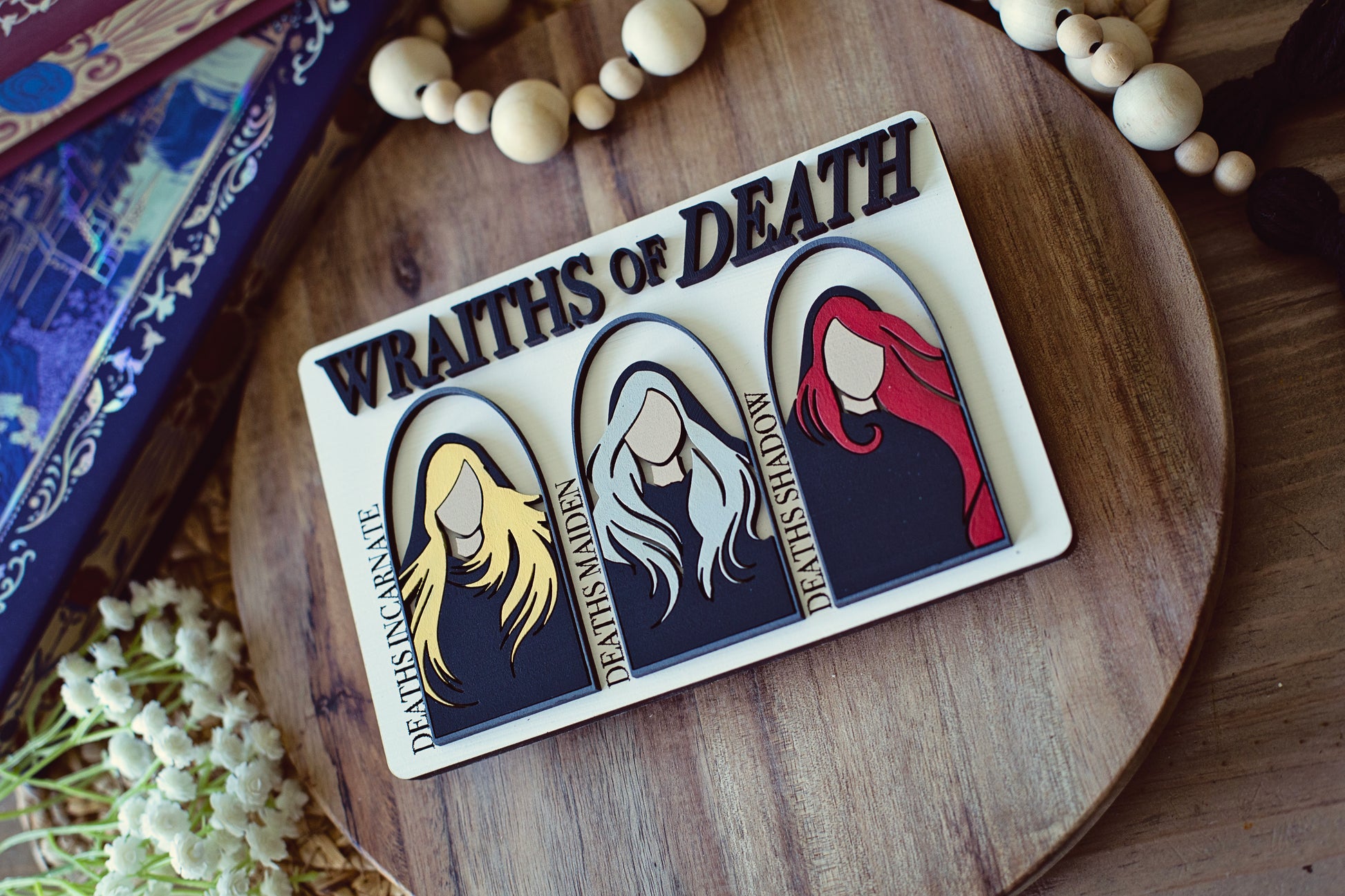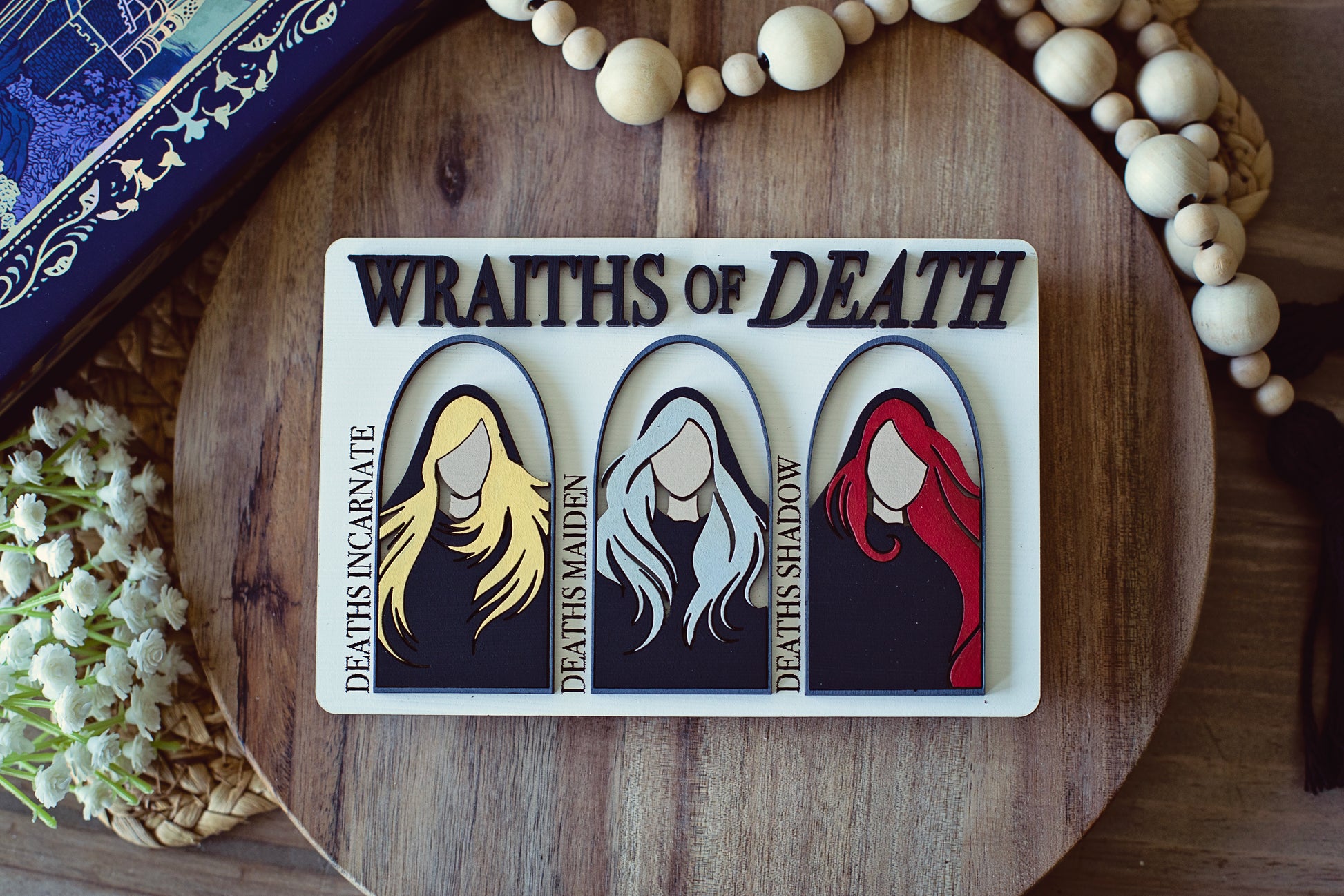 This Wraiths of Death sign is the perfect accent for any room. It adds a special touch to any bookshelf or wall display. Its natural woodgrain finish adds warmth and texture to any decor. Show off your style with this unique and stylish sign.